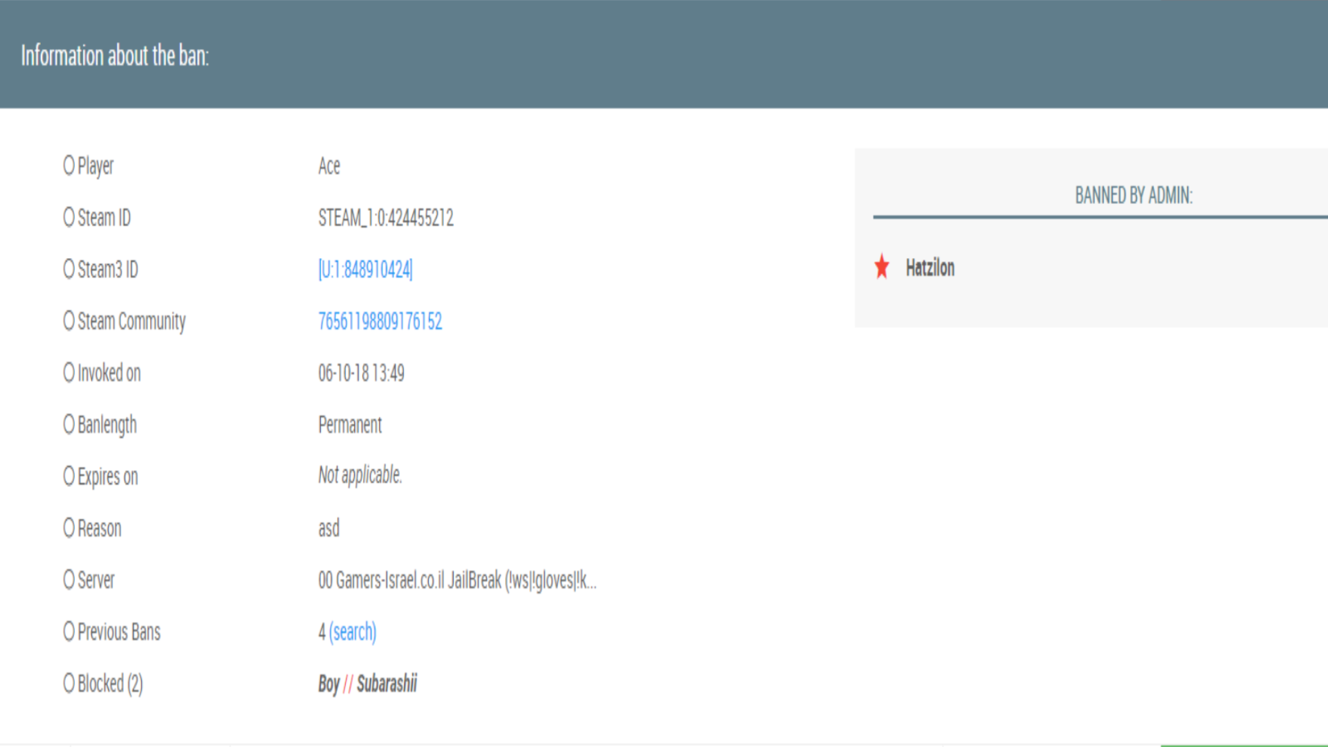 • Steam ID של שניכם או יותר: Hatzilon: STEAM_0:1:202406355