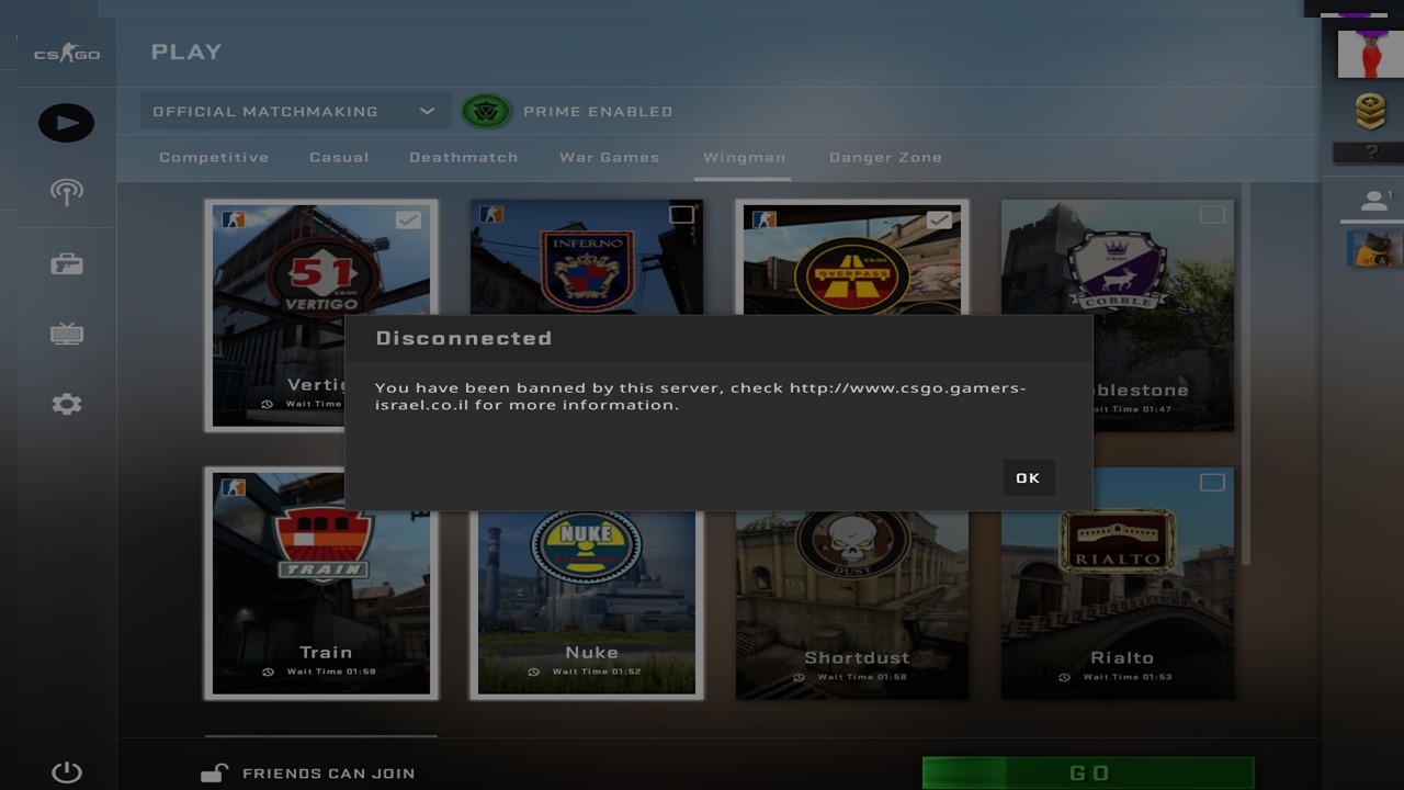 תבוא בבקשה לבירור בשרת הטים ספיק שלנו ושם נוכל לברר על הבאן שלך ip:gamers-il.com