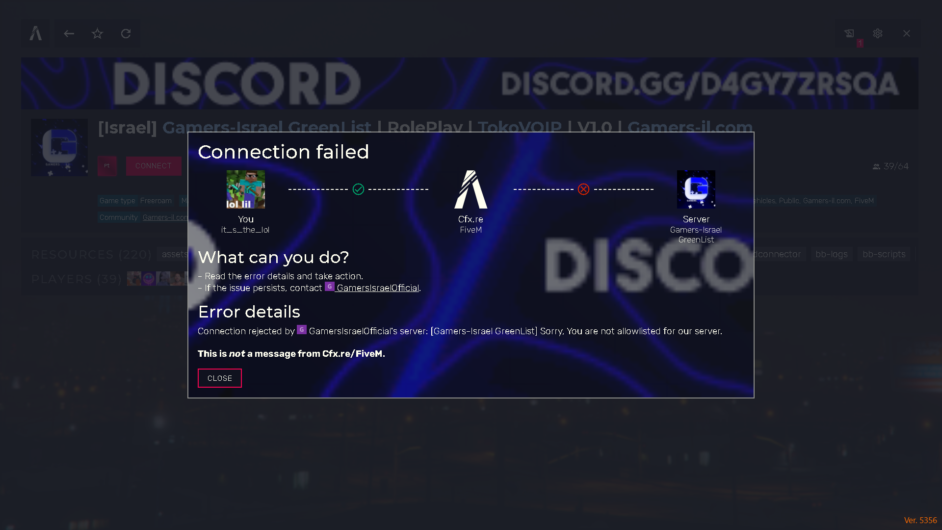 להמשך עזרה תוכל לפתוח טיקט בשרת הדיסקורד וצוות השרת ישמח לעזור לך ולתת לך מענה בכל שתצטרך.
