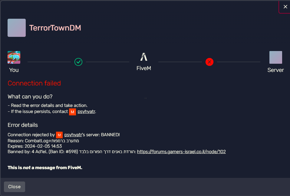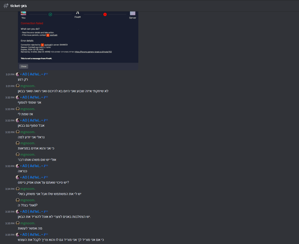 מקום בו קיבלת את הבאן (שרת טים ספיק/שרת דיסקורד/שרת משחק):שרת משחק