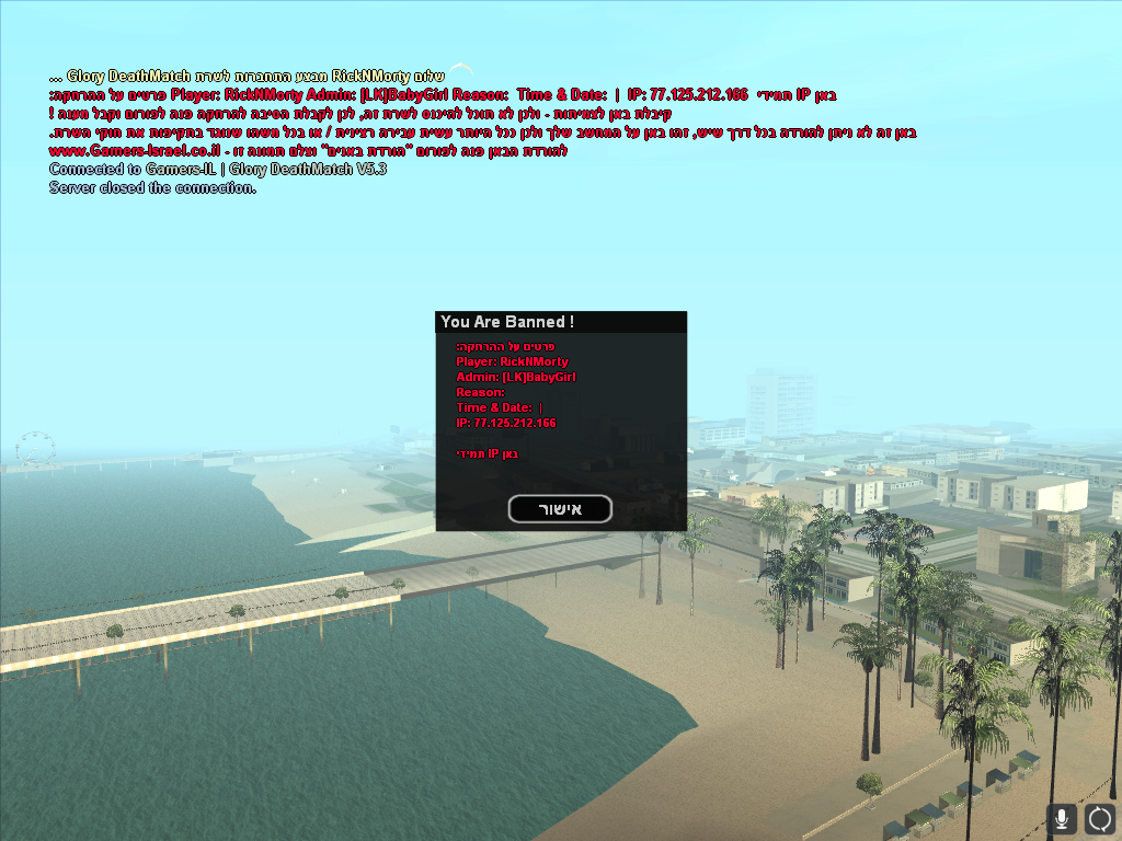 שם האדמין שנתן את הבאן: [LK]BabyGirl